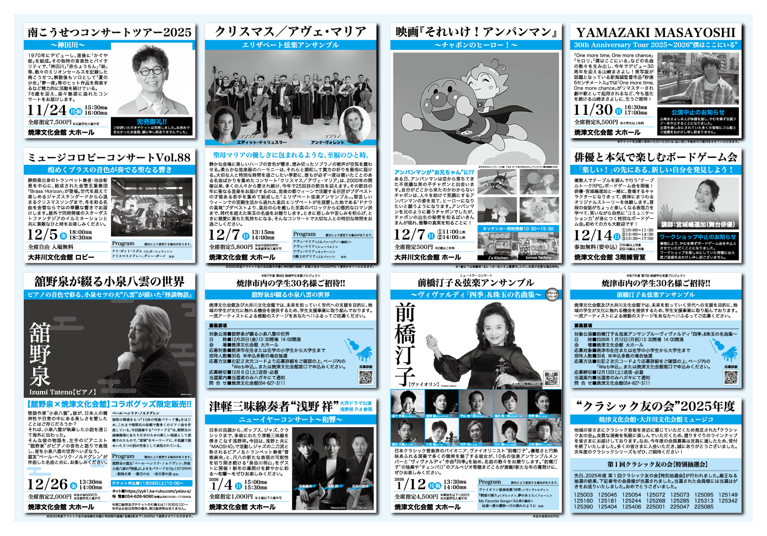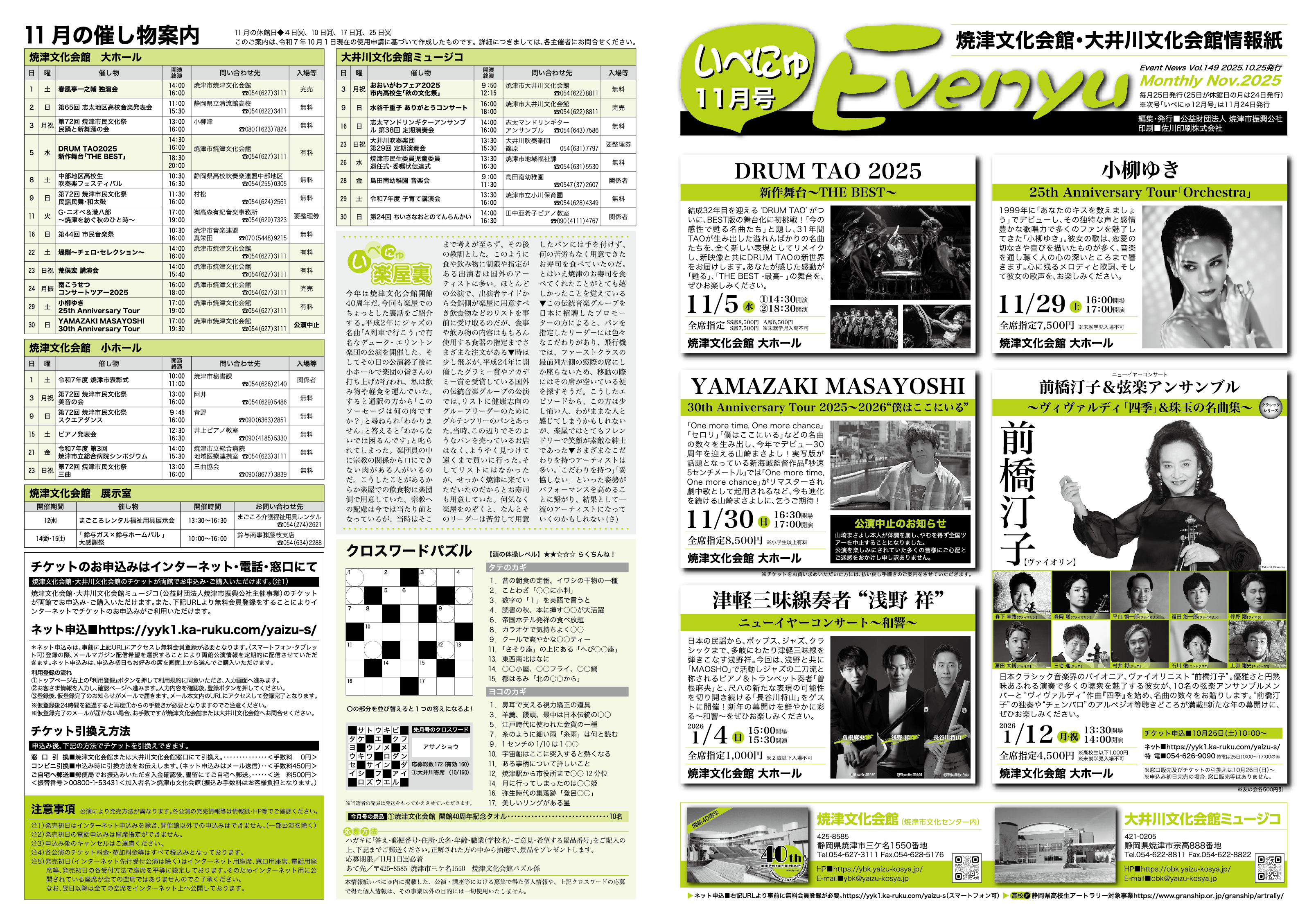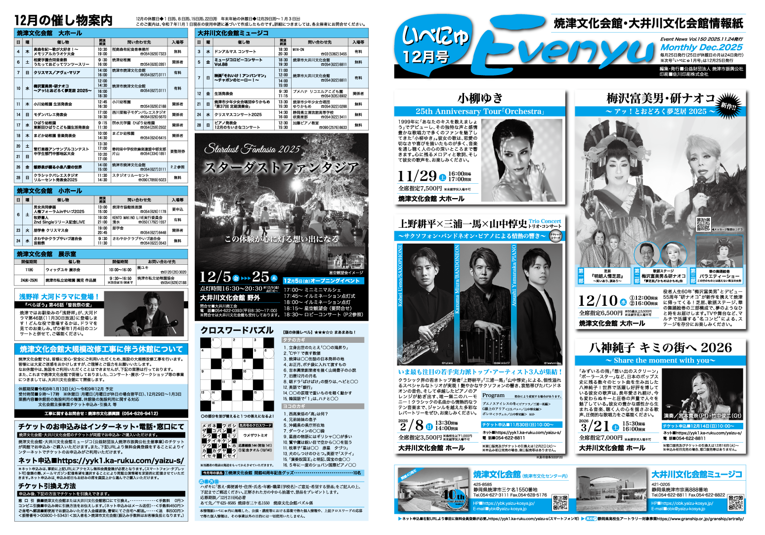 焼津文化会館・大井川文化会館の情報紙「Monthlyいべにゅ」をPDFファイルで掲載しました。どうぞご覧ください。